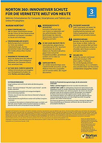 Specification: Norton 360 Deluxe 2022, 2+1 Edition, Antivirus, Unlimited Secure VPN, Password Manager | 3 Geräte | 1 Jahr | PC/Mac/Android | Aktivierungscode in Originalverpackung