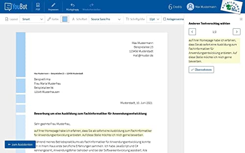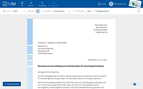 Superschnell zum perfekten Anschreiben für deine Ausbildung: Der YouBot-Bewerbungsassistent hilft dir mit digitaler Intelligenz.