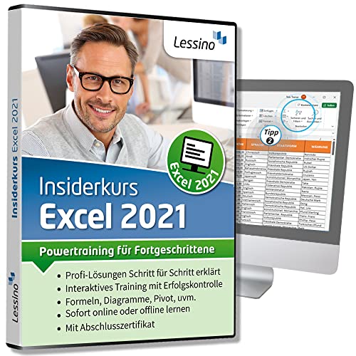 ![Excel 2021 Insiderkurs - Powertraining für Fortgeschrittene | Lernen Sie Diagramme, Pivot, Formeln und Funktionen effizent zu nutzen | auch Excel 365 geeignet | Online-Kurs + DVD [1 Nutzer-Lizenz] - Image 3](https://m.media-amazon.com/images/I/51+mhNUqbAL.jpg)