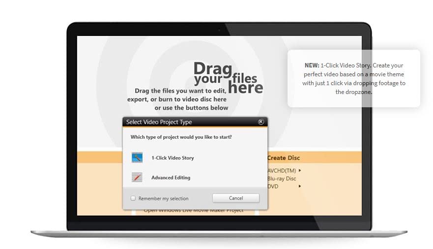 - Erstellen Sie automatische Filme & Diashows mit „1-Click Video Story“ Konvertieren mit voll kompatiblen Disc-Profilen: DVD Video AVCHD & Blu-ray Video Discs Unterstützung neuester Mobilgeräte