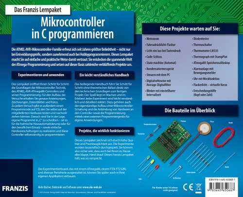 Specification: Das Franzis Lernpaket Mikrocontroller in C programmieren, CD-ROMLernen Sie in 40 spannenden Experimenten Ihre eigenen Programme zu entwickeln. Ausstattung: Experimentierplatine, Bauteile, Handbuch mit 200 Seiten