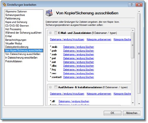 - Filterfunktionen bei Sicherung und Wiederherstellung