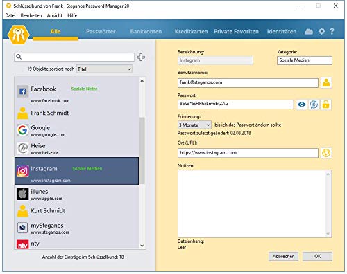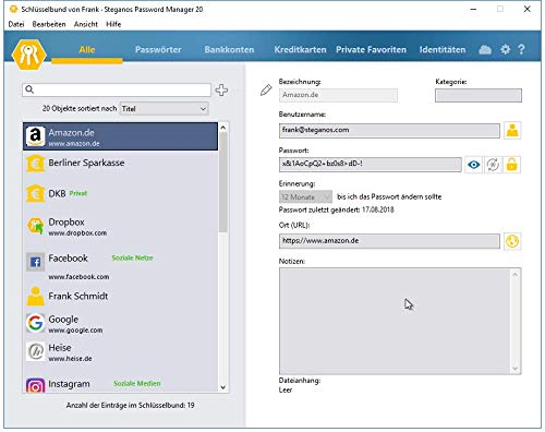 - NEU! Vollsynchronisation auch zwischen mehreren Steganos Passwort-Manager 20