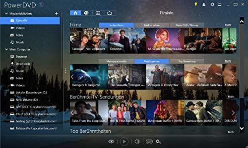 Universeller Medien-Player für den PC. Verwaltet und organisiert die Medien-Dateien für Filme, Videos, TV-Sendungen, Musik und Fotos mit einer übersichtlichen Oberfläche. Zudem erweitert er die Unterstützung des Betriebssystems für die DVD-Wiedergabe.